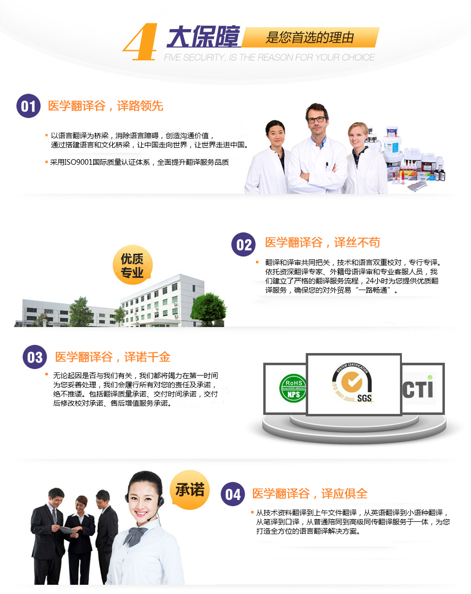 医学翻译谷坚持奉行“专业、严谨、快捷”的宗旨,凭借高水平的专业化翻译队伍,以严谨不苟的作风,为客户量身定裁专业化的语言解决方案,为客户提供快捷、足不出户的翻译产品和服务。
